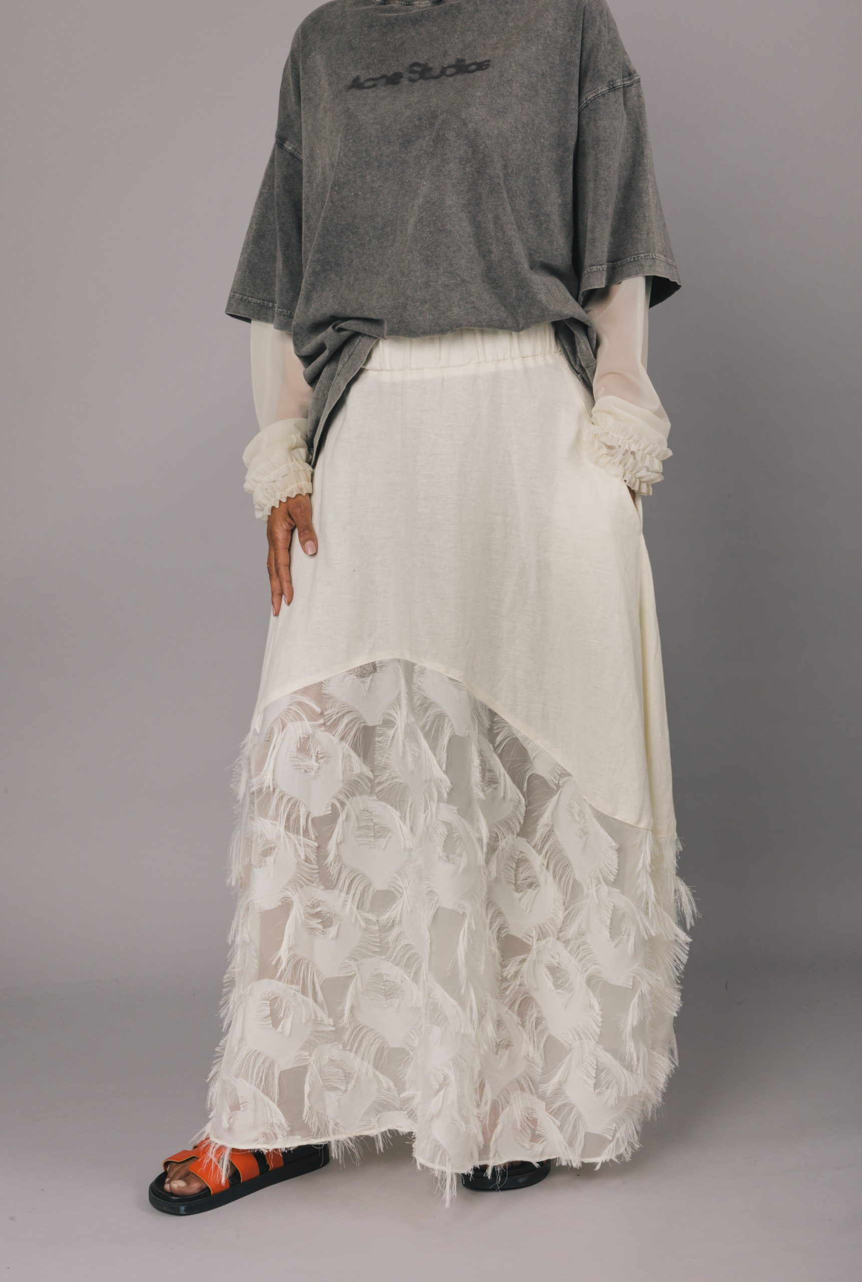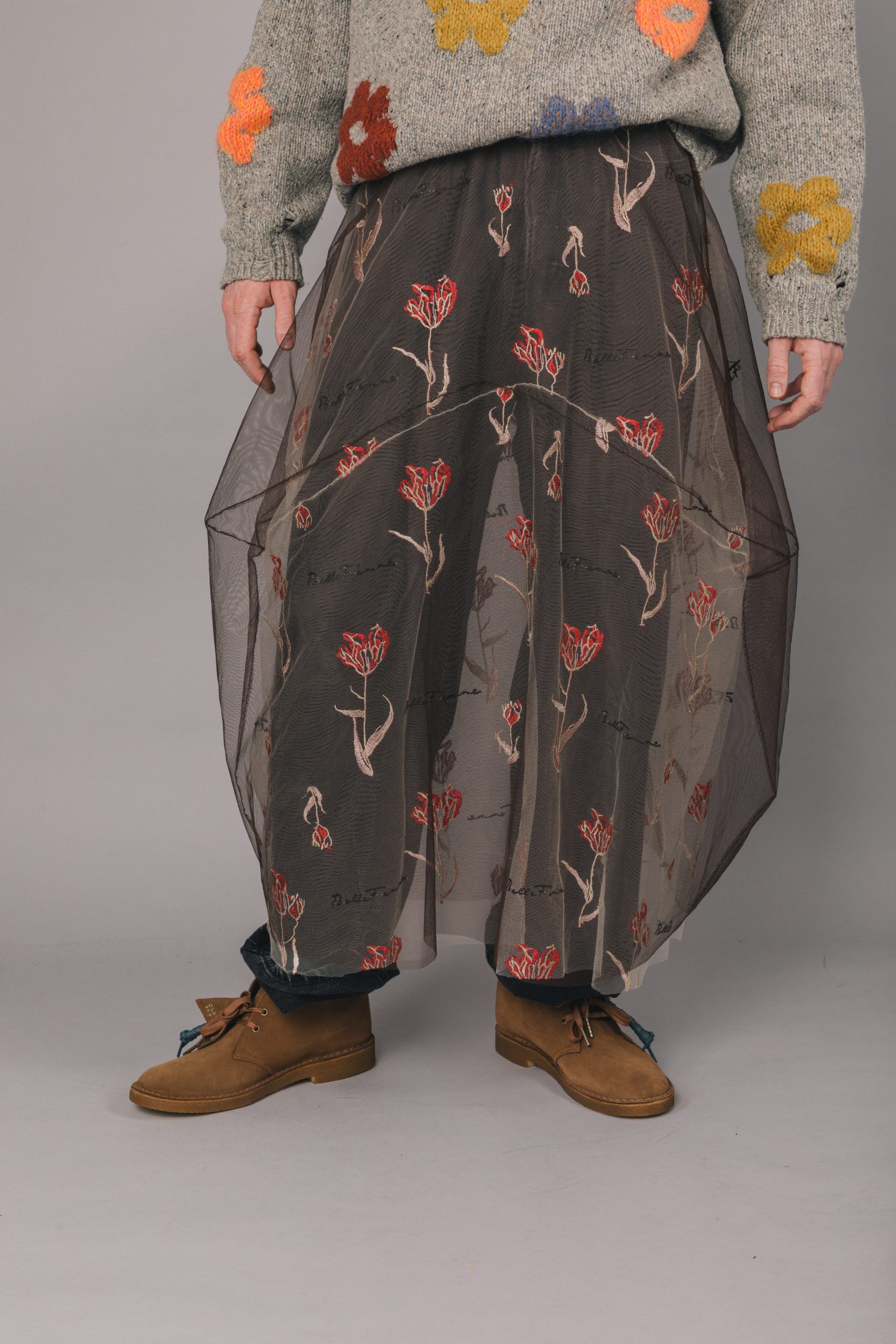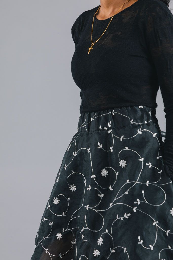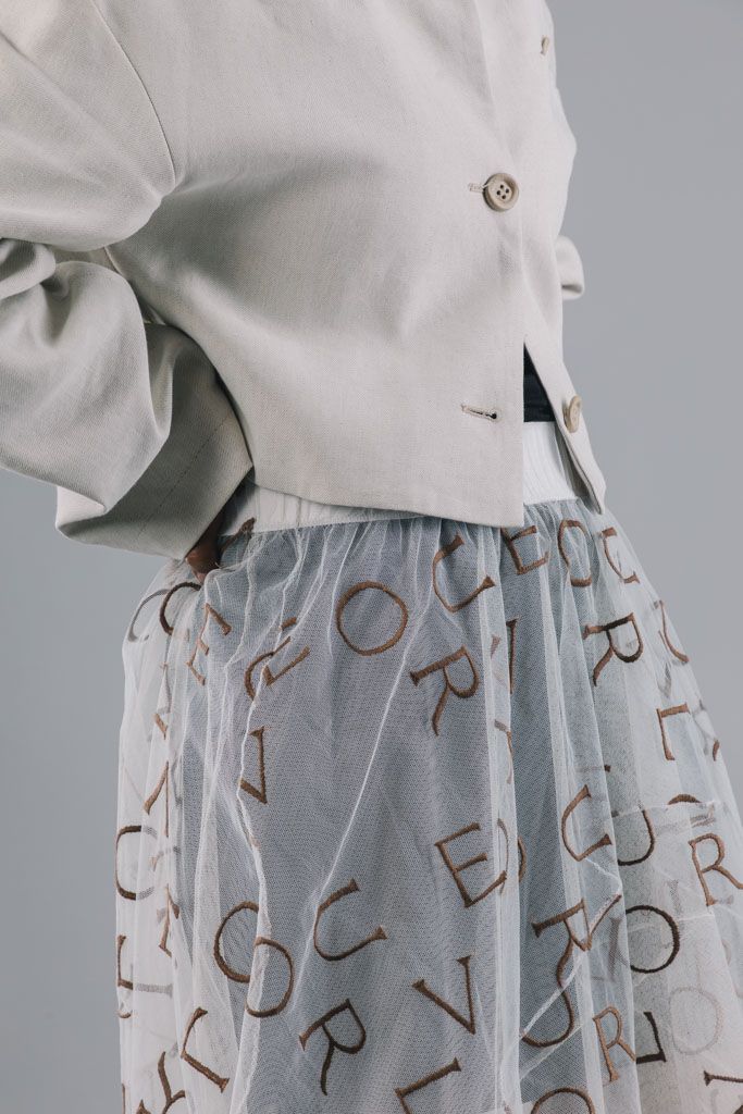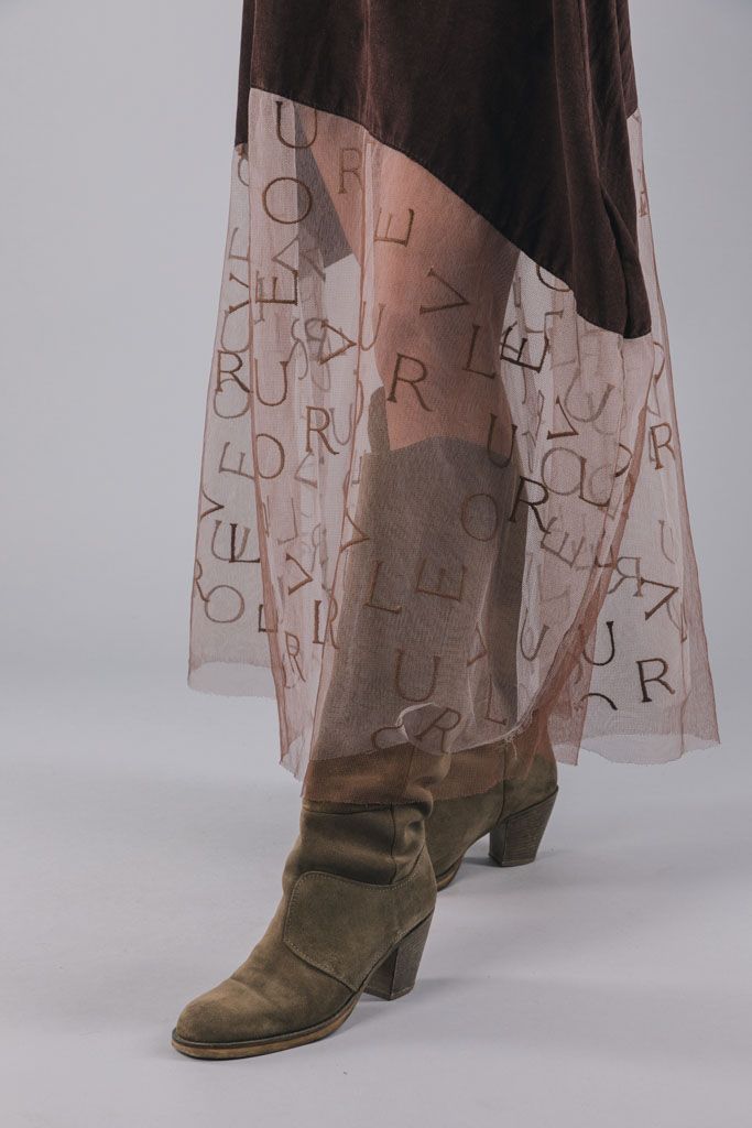 Genom att mixa olika kvaliteter och mönster i skapandet växte olika effekter successivt fram vilket bidragit till en mångsidig kjolkollektion. Handplockade tyger gör att ingen kjol är den andra riktigt lik.
