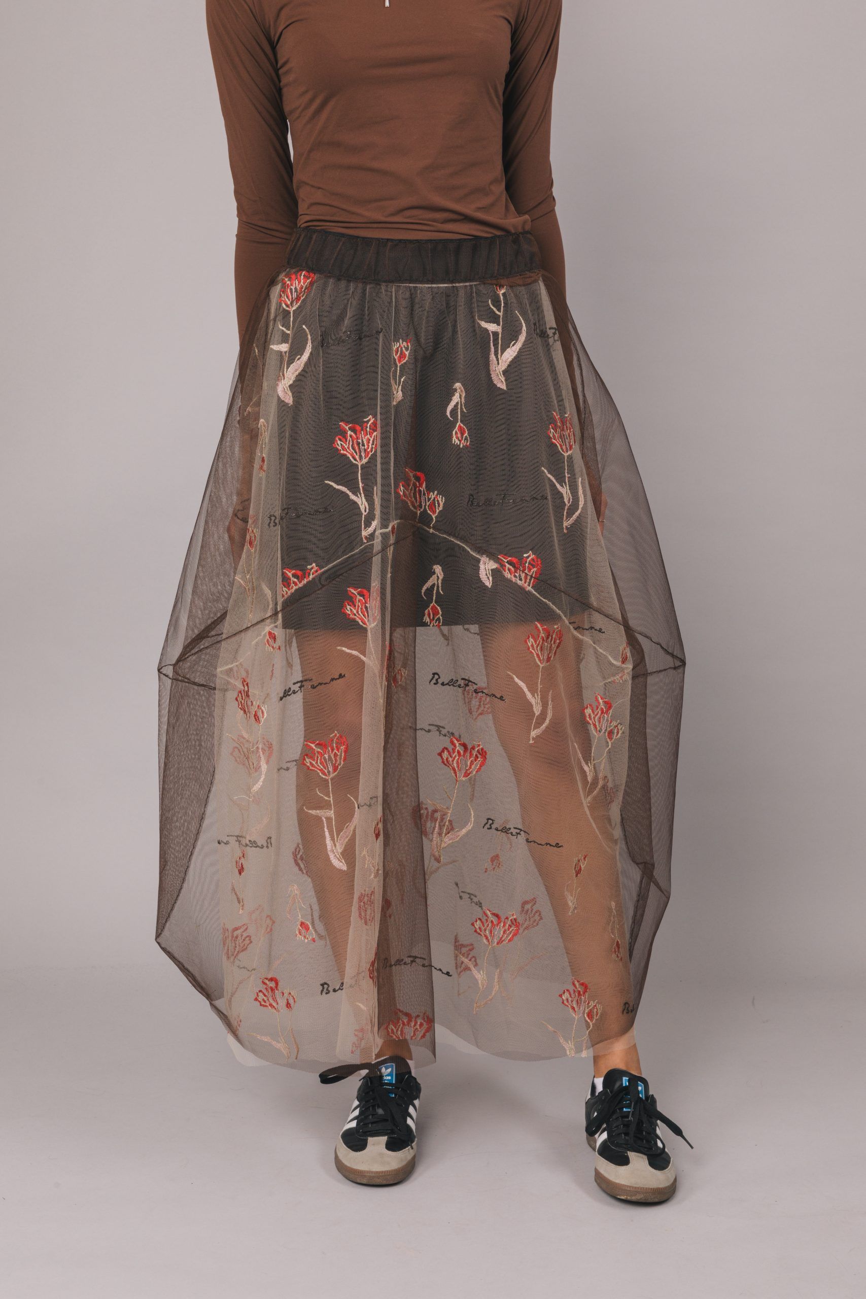 2) Täckande kjolöverdel med transparent tyll nedtill.