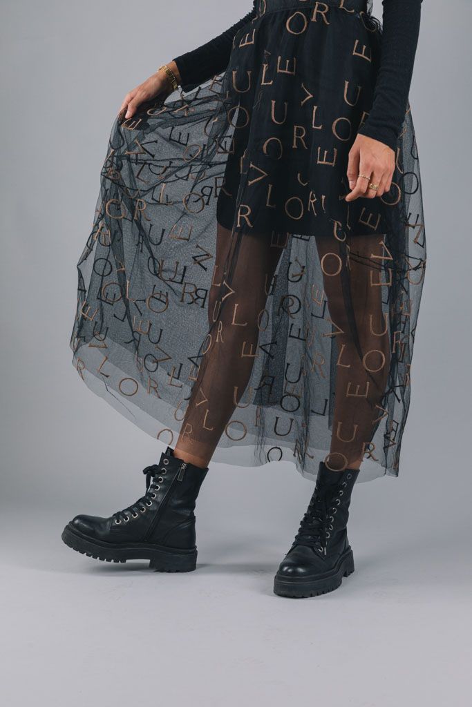 1) Tyllkjolar som du bygger genom att mixa mellan tryck och enfärgade tyll i tre lager för att skapa en snygg siluett oavsett om du bär den svart eller vit som yttersta lager.